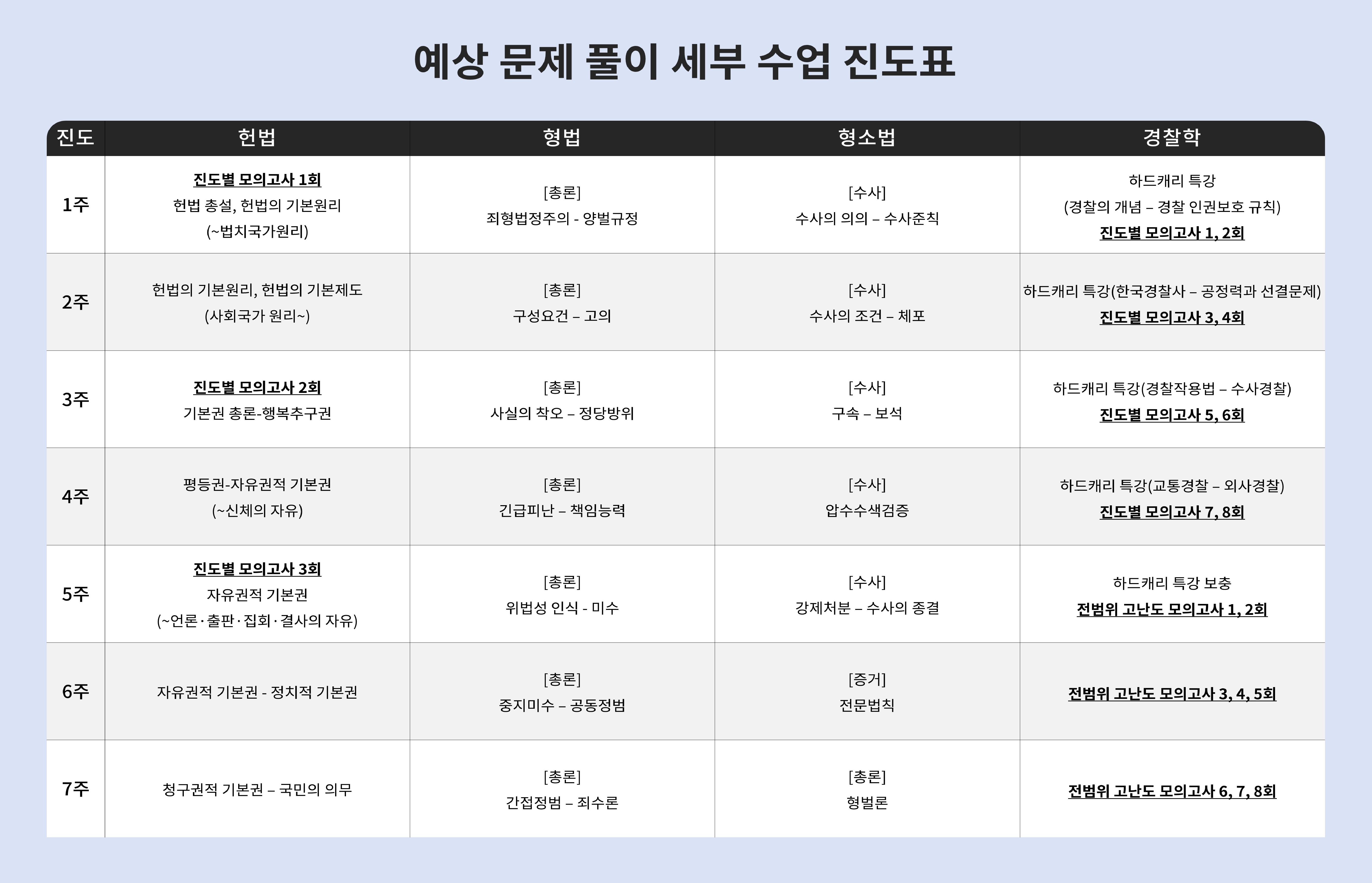 - 검정제부터 법과목 학습계획, 기초조사 상담, TEST 결과를 반영한 약점보완 상담, 수험생활 멘탈케어까지